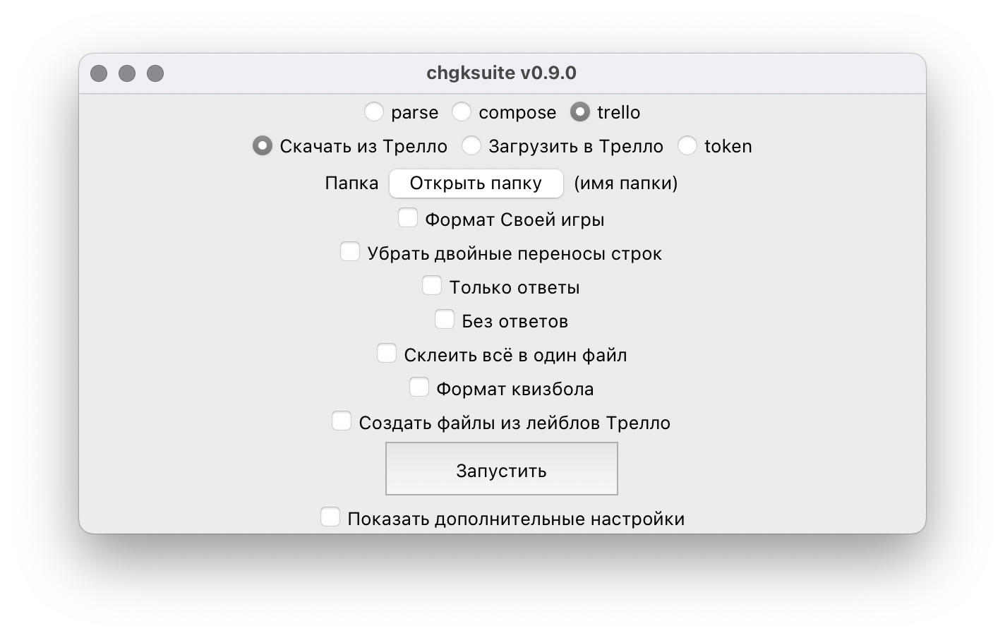 - Убрать двойные переносы строк: chgksuite поддерживает только одинарные переносы строк внутри вопроса, но вручную следить за этим неудобно. Вы можете поставить эту галочку, и тогда chgksuite при выгрузке из Трелло уберёт лишние переносы строк за вас.
